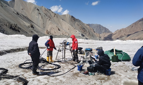 热水钻机在达尔克冰川进行压力测试孔钻探