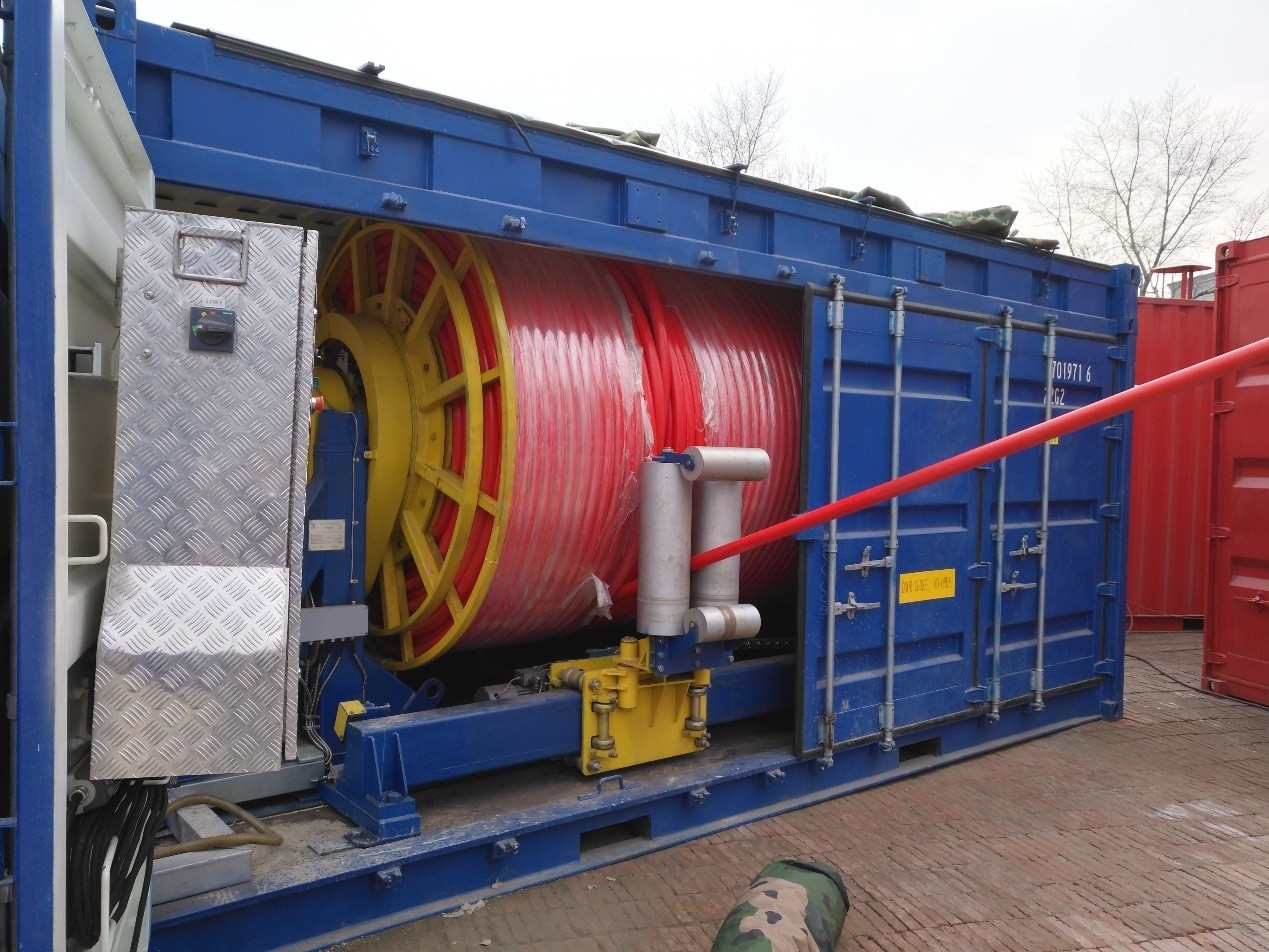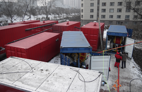 经过6年攻关,最终形成了钻深能力2200m的热水钻机,主要包括钻进系统、绞盘系统、水体加热系统、水循环利用系统、测控系统和辅助系统六大子系统,热水加热能力达到兆瓦以上,满足将流速不小于 200L/min 的连续冷水加热到 80℃-90℃。软管为水电一体复合管,配合钻具内的随钻参数检测系统,可实现井下钻进数据的实时监控。