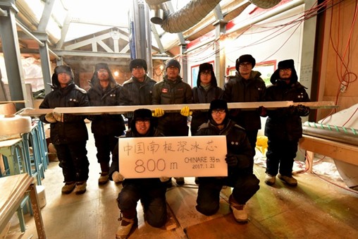 2016-2017考察季:完成取芯钻探146.21米,取芯145.86米;完成上一年度剩余冰芯及当年冰芯切割与处理;灌注钻孔液及增重剂3600升,深冰心钻探至800.9米。
