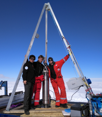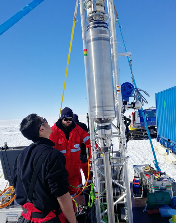2018年我校派遣宫达老师和李亚洲博士再次参加了“东南极Ekström冰架热水钻探”项目,并在南极现场研发了低扰动型锤击式冰下沉积物取样器,完成一项技术创新,并基于技术成功获取了1.28米柱状冰下全地层沉积物样品。