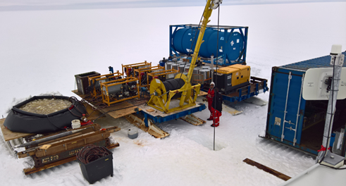 2017年JLU冰下沉积物振动取样器进行下井试验