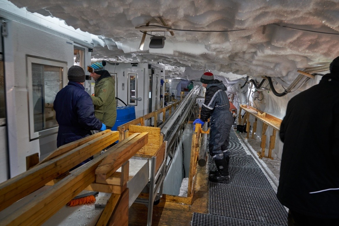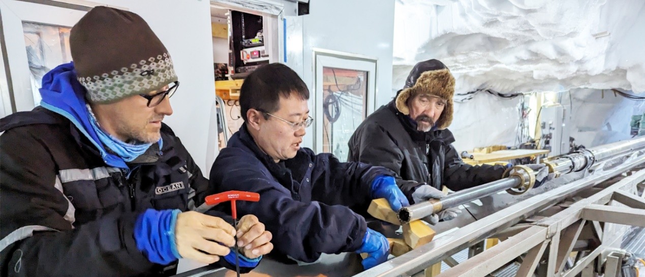 2017年6月,吉林大学极地研究中心主任Pavel Talalay教授走访了EGRIP营地并与哥本哈根大学冰与气候中心负责人D. Dahl-Jensen教授,在EGRIP项目的未来合作上达成了协议。随后我校分别于2018年、2019年和2023年派遣1人、4人和1人参与实施格陵兰东北冰流的深冰及冰下基岩取芯钻探,并进行冰样处理与钻孔测井,同时对我校自行研发的极地冰孔测井仪进行测试。