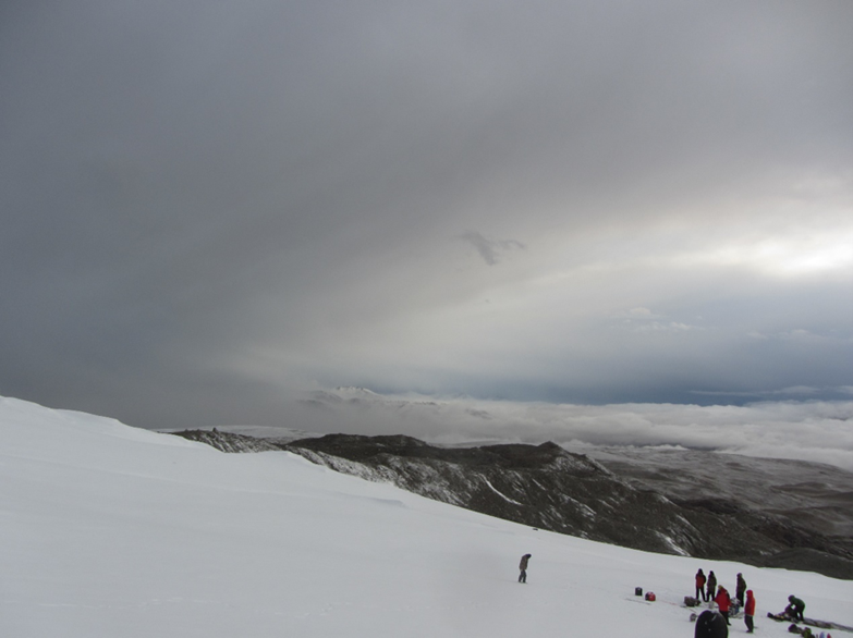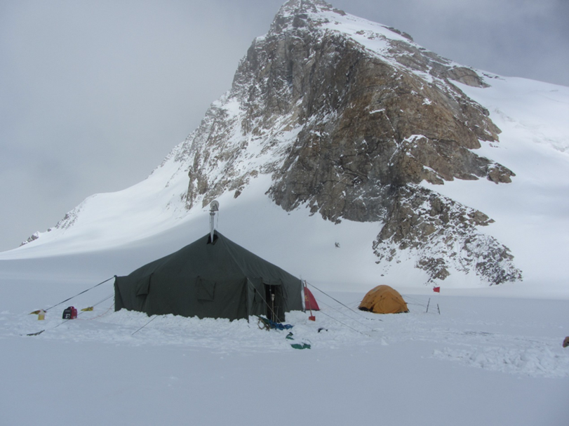 钻探地点选择在两山之间的平坦区,此处平均气温在-7°C左右。开钻初期钻探较为顺利,但随后采用的铠装电缆外皮出现破损,且钻孔倾斜造成钻具在孔中下放阻力增大,最终在钻进22米后,由于钻探地点附近发生了暴风雪和雪崩,人员也出现严重高反,钻探队伍不得不被迫撤离现场。
